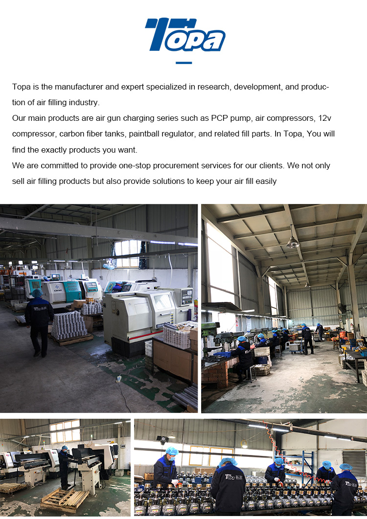 Ang TOPA usab adunay pcp hand pump, air compressor, regulator ug uban pa nga kagamitan sa pagpuno sa pcp, kung kinahanglan ang uban, palihug kontaka kami.